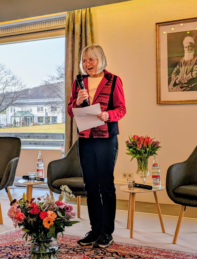 Nach der Begrüßung übernahm unsere stellvertretende Vorstandsvorsitzende Heidi Mühlschlegel das Mikrofon. Wie dankbar können wir doch sein, dass sich das Bahái-Frauen-Forum e.V. im Laufe seines inzwischen 30-jährigen Bestehens so erfolgreich sowohl lokal als auch national mit anderen Frauenorganisationen vernetzen konnte. Von Beginn an war es – anders als bei den meisten Frauenorganisationen seinerzeit – ein besonderes Kennzeichen unseres Vereins, dass auch Männer herzlich willkommen sind. Dies war seinerzeit auch Anlass für UN Women Deutschland, das BFF als Mitglied aufzunehmen, wodurch wir seit Jahren mittelbar an der jährlichen Arbeit der UN-Frauenrechtskommission teilnehmen konnten.