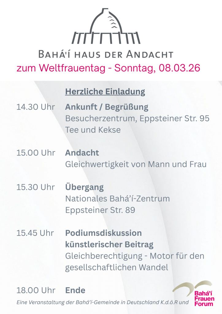 Liebe Freundinnen und Freunde des Bahá’í-Frauen-Forum e. V. !